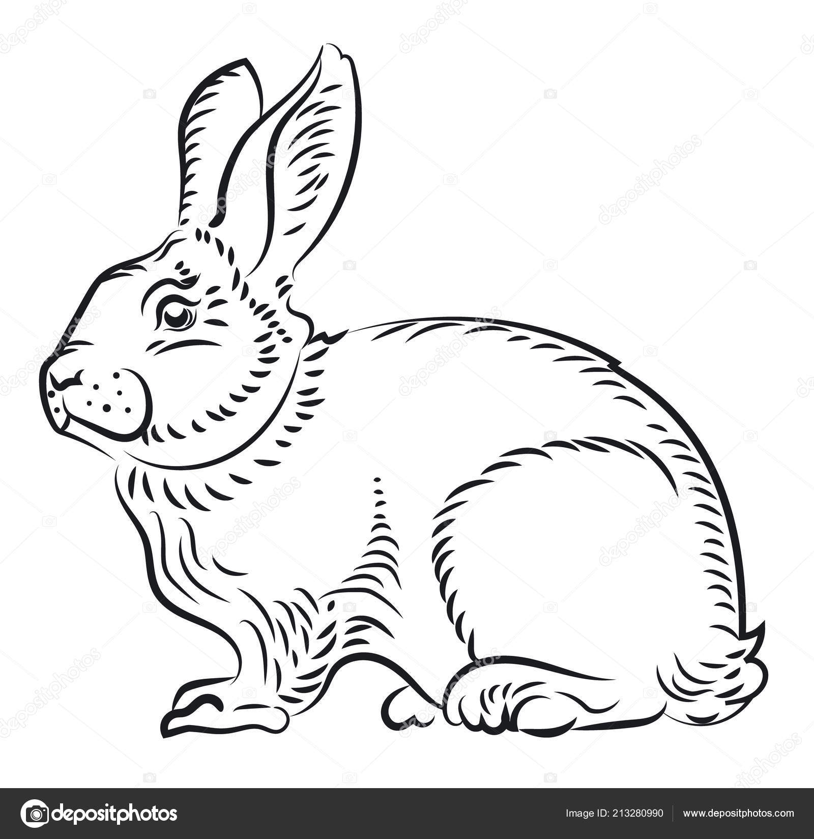 Black And White Linear Draw Rabbit Vector Illustration Royalty