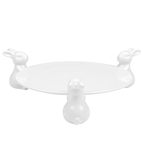 This item decorative white ceramic bunny rabbit cake stand 16 inch dessert plates food server display tray.