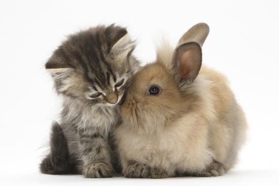 Tabby Kitten 10 Weeks And Young Rabbit Photographic Print By