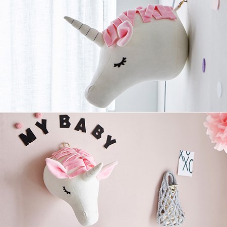 Animals Elephant Rabbit Unicorn Head Wall Mount Hanging Kids Doll